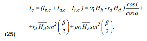Scattered insolation (Id.c) on the surface of solar panels is estimated as follows: