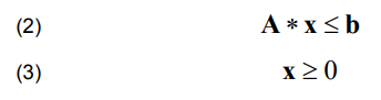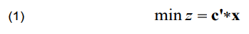 where: z – objective function, c’ – matrix of objective function coefficients, A – matrix of limiting conditions coefficients, x – matrix of variables (unknowns), b – matrix of limiting values of the right side of the inequality (2). Formula (3) is a non-negative condition.