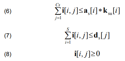 where: C – objective function constituting the cost of electricity supply subject to minimization, S – total number of power stations i, bs – the price of the building of the i-th power station, ksu – binary value related to the use of the station (0 – station not used, 1 – station used), es – cost of i-th station exploatation, c – delivery cost matrix for each station-customer pair, i – the amount of electricity transmitted from the i-th station to j-th customer, kl – power loss cost, Cs – total number of customers j, as – active power available at the station, ds – demand for active power at given customer.