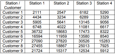 In the objective function (5) it was taken into account that the cost of electricity supply from the HV / 110 kV to 110 kV stations will depend on the distance, active power demand, fixed cost related to the operation of a given high voltage station and the value of the charge for transmission power losses. Table 1 contains the values of the cost of delivery parameters for all potential station-customer pairs. They were created by applying the MW-mile method in which the delivery cost is defined by the formula (9) [12]: