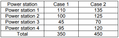 Table 4. Binary values corresponding to the need to build a given power station in each case.