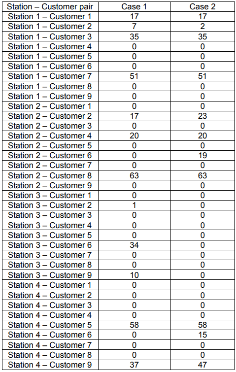 Based on the presented optimization results, the following values of the objective function (electricity supply cost) were obtained: for case 1 – PLN 650 244 922, and for case 2 – PLN 493 955 302. The result for case 2 is smaller because the calculations show that building of high voltage station 3 is redundant. Consequently, each Station 3 – customer pair has a 0 value in Table 5. Hence the result for case 2 is taken as an optimal for the considered planning problem.