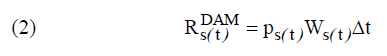Revenues from the sale of services on MAS and DAM are determined by formulas 2 and 3, respectively.