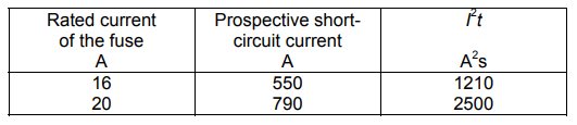 Table 3. Maximum let-through energy I2t of the gG fuses (IEC) [11]