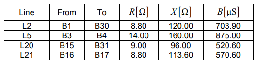 For the purposes of the research, in the field of interarea oscillations, the length of four lines in the model was increased by changing the basic parameters – resistance, reactance and susceptance. The following lines were extended: L2 connecting nodes B1 and B30, L5 – nodes B3 and B4, L20 – nodes B15 and B31 and L21 – nodes B16 and B17. The new parameters of the lines are presented in Table 1.