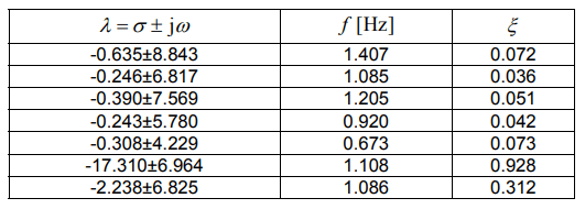 The eigenvalues of the state matrix A determine the time domain response of the system to small disturbances. From state matrix A we can calculate the eigenvalues which can determine the stability of the system. For a complex pair of eigenvalues λ = σ ± jw , the real component gives the information about damping and the negative values represents a damped oscillations. The frequency oscillations f in Hz is given by: