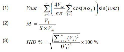 Where: M: – modulation index; V1: – fundamental voltage; S : – number of dc source ; αk: – switching angle; Vn: – output voltage for the nth harmonic. [22]