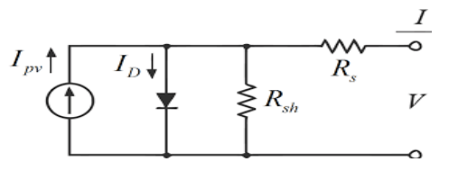 were:- Ipv: – represent the output current generated by the PV panel under standard climatic conditions of the temperature and the irradiation (T=25°C and Irr =1000W/m2); ID: – The saturation current; Rsh: – due to leakage current through the p-n junction; Rs: – due to the combined resistances of contacts, metal grids, and P and N layers