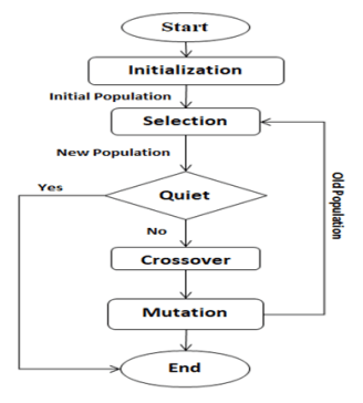 The most common optimization algorithms used are Genetic algorithms (GA). Slime moiled algorithm (SMA).[28]. Gary wolf algorithm (GWO). Whale optimization algorithm (WOA). Augmented Grey Wolf Optimizer and Cuckoo Search for Global Optimization (AGWO_CS). Artificial Bee Colony Optimization (ABC) Achieved to obtain the required optimum solution for calculating switching angles for MLIs for the wide range of Modulation index M%. [27-32]. Fig. 3. show the flowchart of optimizing proses for Genetic algorithm optimization.