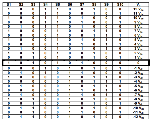 Table. 1. Show the Switching states for the 25-levels inverter for all switches:-
