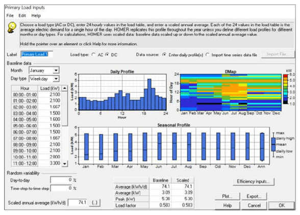 In our case study, we imported a data file from the site is a BTS station, owned by one of the Algerian cell phone network operators to present the load profile, as shown in Figure 11 and 12.