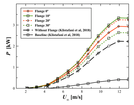 4. Curved diffuser with flange 10° has the greatest estimated generated power production around 3.3395 kW.