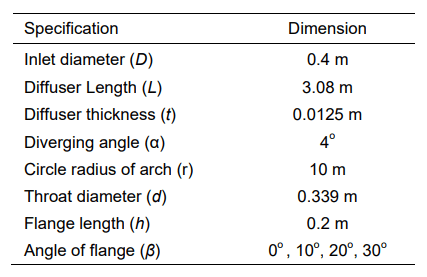 Table 1. Diffuser type structure (2D) dimensions