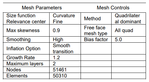 Table 2. Mesh parameters and controls