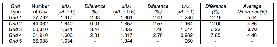 Table 3. Grid Independence – Difference value of streamwise flow