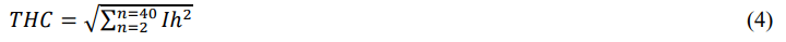 The summations of current orders 2 to 40 are the cause of distorted waveforms leading to Total Harmonic Current. The value of the Total Current Harmonics (THC) is basis for the installation of active filters. Mathematically, THC can be illustrated as in equation 4 (Durdhavale, 2016).
