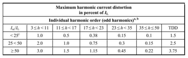 Table 7: Recommended Current Distortion Limits for Systems rated 120V through 69kV (Committee, Power and Society, 2014)