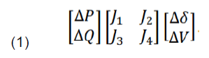 Notes : ΔP and ΔQ is the real power and the reactive power. Δδ and ΔV is the phase angle and the bus voltage value. For J1, J2, J3, and J4 is a Jacobian matrix.