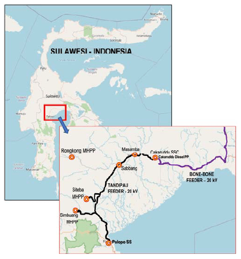 The electric power system in the Tandipau Feeder is based at the Palopo SS, there is the Simbuang MHPP with a capacity of 3000 kW, the Siteba MHPP with a capacity of 6000 kW, the Cakaruddu Diesel-PP 5000 kW which serves a load of 12786 kW.