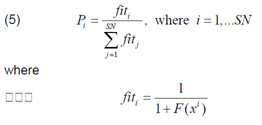 Each onlooking bee (i.e. bee-viewer) selects one ‘food source’, i.e. the parameter set xi, i = 1,…,SN (from all possible sources), with probability Pi . One set may be selected by any number of bees.