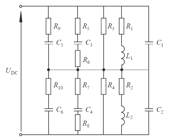 The electrical machine is a key element responsible for the correct performance of the machine. The technical condition of the insulation practically dictates the useful life of the device. Insulation is subjected to mechanical, chemical, electromagnetic, and thermal stresses; it is characterized by its resistance to heat, electrical strength, and heat conductivity coefficient. The problem of diagnosing the current state of the insulation and forecasting its progress of degradation is most important for all users of electrical machines and drives. At present, there are numerous insulation diagnostic methods exist; they can be classified e.g. on the basis of applied diagnostic voltage [2,3,4]. Among the most popular tests run with AC voltage, we may list the dielectric loss tangent tanδ measurement, partial discharge tests or the dielectric frequency response [5,7]. Among DC voltage tests, we can list the polarization method (recovery voltage test and insulation discharge current); quantities such as the polarization index (PI), capacitance of insulation system C, and the dielectric discharge DD are evaluated. Insulation may also be tested with step voltage (the voltage magnitude increases with time). When insulation-to-ground (that is, the main insulation in the machine) has been tested, turn-to-turn insulation measurements may also be performed [1,5,6]. Here, we may list the test of discharge current flowing when a loaded capacitor has been connected to the winding to the winding – surge test) or the test with voltage induced in the winding when constant current flowing through the winding has been switched off (recording of voltage waveform, assessment of induced voltage frequency and logarithmic decrement). The application of a given method depends on the goal of the measurements, available facilities/measurement devices, competence of diagnosing person/s, as well as the condition (age, wear) of insulation. Methods should be inexpensive and effective, easy to implement, and interpret. Often, more or less complex equivalent schemes are used to describe the insulation system. Such schemes take into account elements such as winding resistances and inductances, capacitances-to-ground and turn-to-turn capacitances. In practice, each different machine should be represented by its own (dedicated) equivalent scheme. An example of an equivalent scheme is shown in Fig.1. The values of the parameters in the scheme will be time-dependent (in particular, in the case of old insulation parameters, will depend on applied voltage). However, the problem is how to identify these parameters. If the present values of the parameters were determined and compared with the previous ones, it would be possible to predict the future performance of the insulation system. This would be an interesting diagnostic tool.