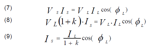 Equation (9) shows that the source voltage depends on both the k, cos(ɸL) factor and the load current IL.