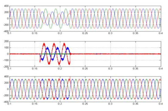 At recovery supply voltage time, a slight disturbance happened during a very short time in both phases of compensated load voltage (Figure 3-c), synchronized with the time when the control adjusts the injected voltage characteristics at the new network situation.