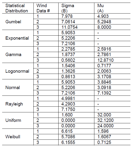 Table 3. Wind time series obtained distribution parameters