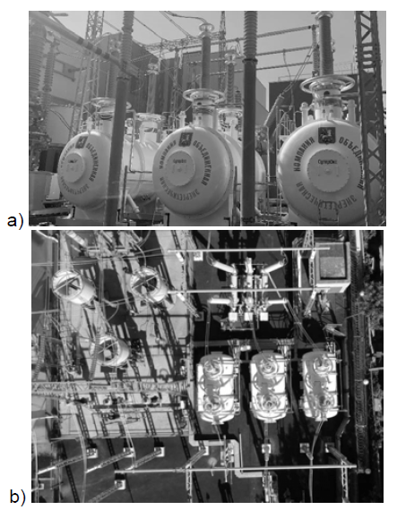 The superconducting fault current limiter consists of three external single-phase apparatus with a reservoir (hereinafter referred to as “phases”, Fig. 4) and a cooling system, which is located in a separate building with the dimensions of 7x14x10m3. The area occupied by the three phases of the surge arrester is similar to the area occupied by three air chokes (Fig. 4 b). The main technical data of the limiter are presented in Table 2 [9], [10].