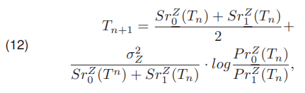 where Tn is in the current and Tn+1 in the next step threshold value.