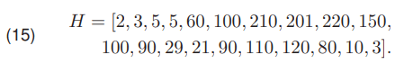 In (15) a vector of example values representing the histogram is presented. For the histogram H (15), a polyline Ħ (16) was created
