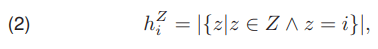 where hZi is a single element of the histogram HZ, i is the index of the element, Z is the image for which the histogram is created. In practice, the value of hZi denotes the number of z pixels whose values are equal to i.