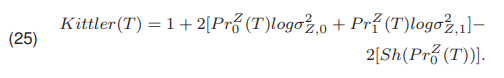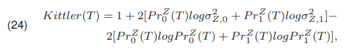 Kittler and Illingworth [18, 19] presented a method in which the threshold is selected by minimizing the function Kittler(T) expressed by (24)