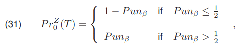 In the case of Punβ > 1/2 a probability PrZ0 (T) equal Punβ and in the case of Punβ ≤ 1/2 the provability PrZ0 (T) should equal 1 −Punβ.