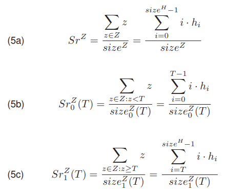 where sizeZ0 (T) and sizeZ1 (T) denotes the number of pixels belonging to the background class and the object class in Z, respectively. A values of the SrZ (5a), SrZ0 (T) (5b) and SrZ1 (T) (5c) can be determined directly from the image Z or using a histogram H.
