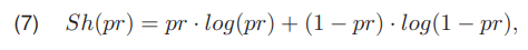 where pr denotes probability. In the case of splitting the image into two classes, pr and 1 − pr denotes the probability of the pixels belonging to one class or the other, respectively. Additionally, the course of the function Sh(pr) is monotonically increasing in (0; 0, 5) and decreasing monotonically in (0, 5; 1).