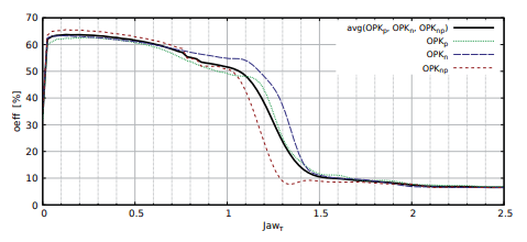 The results of the Jawahar method effectiveness tests are presented on Fig. 3. The influence of the coefficient Jawτ on oeff was shown. The maximum effectiveness of oeffavg = 63, 5% of the Jawahar method is obtained for Jawτ = 0, 13. The effectiveness above 50% is reached forJawτ ∈ (0, 01; 1).