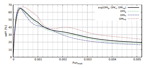 For the second Pun algorithm, the influence of the coefficient Punmod on the effectiveness of thresholding oeff was analyzed and shown on Fig. 4. Thresholding with Punmod > 0, 005 have the efficiency oeff < 25%. After choosing the appropriate value Punmod a significant improvement is obtained over the classical implementation of the second Pun method. Highest efficiency is achieved by modification Punmod (32) on the level of oeffavg = 65% for Punmod = 0, 00029. Modification of the coefficient Punmod by setting a constant value close to 0, increased the effectiveness of thresholding compared to the unmodified version of the algorithm.