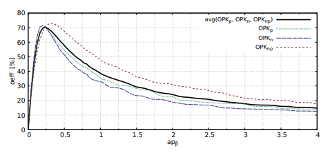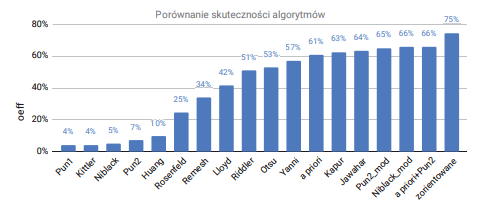 On a Fig. 5 a results of thresholding effectiveness tests using of the second Pun algorithm combined with a priori was shown. It should be noted, that the effectiveness of the thresholding oeff is dependent on the value of the coefficient apβ. Fig. 5 illustrate the results showing the dependence of the apβ coefficient on the effectiveness of thresholding oeff. For apβ ∈ (0, 16; 0, 46) combination of a priori and Pun2 method reaches the effectiveness oeffavg above 60%. The maximum value of oeffavg = 70% is achieved for apβ = 0, 26.