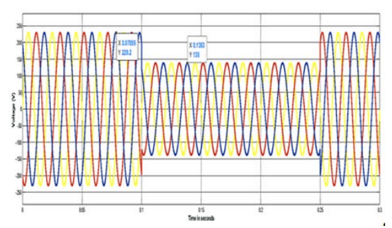 The aim of power quality improvement is to provide pure sinusoidal voltage and current to the consumers. The problem formulated includes the addition of load at the distribution end, introducing voltage sag, swell, and harmonics of a different order which is as shown in figure 1 – figure 4.