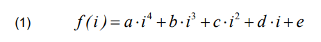 where: i – the subsequent number of the month; a, b, c, d, e – coefficients of the approximation function.