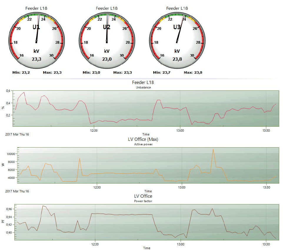 Real-time monitoring enables the user to connect directly to a PQ meter and monitor selected parameters without delay.