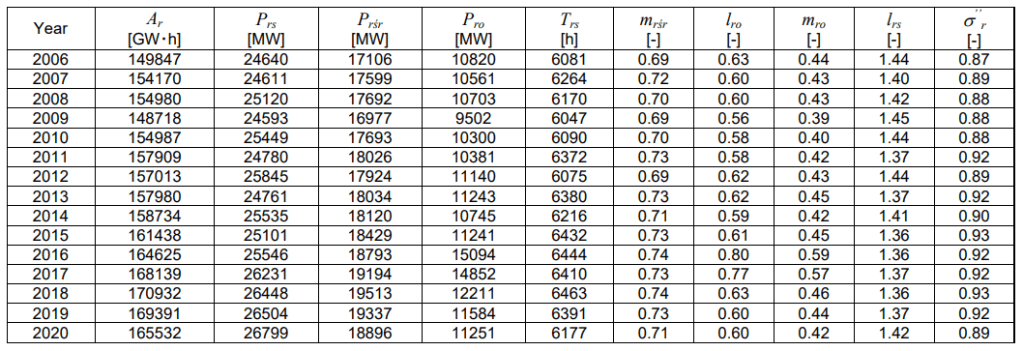 Table 1. Parameters and indicators characterizing the annual load variability [own study]