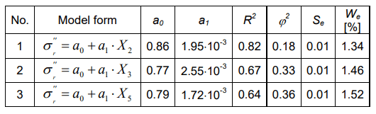On the basis of extensive statistical surveys, making a detailed analysis of the quantities affecting the value of the degree of uniformity of monthly peaks σ’’r, the following were adopted as explanatory variables for the model: X1 – equipment of households with washing machines [%], X2 – equipment of households with dishwashers [%], X3 – equipment of households with microwave ovens [%], X4 – equipment of households with mobile phones [%], X5 – equipment of households with personal computers [%]. Table 5 presents the comparison of the developed econometric models and their fitting measures.