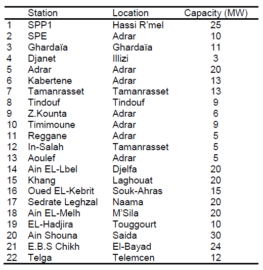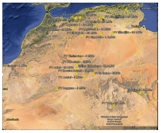We can see that 10 of the 22 stations are allocated far to the middle and the borders of the Algerian Sahara. Figure 10 gives images of two types of SP power stations, one PV station at the North (Oued-Elkebrit) [19] and one CSP station at the south (Adrar)