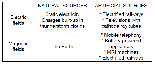 Table 1. Examples of natural and artificial sources of electric and magnetic fields