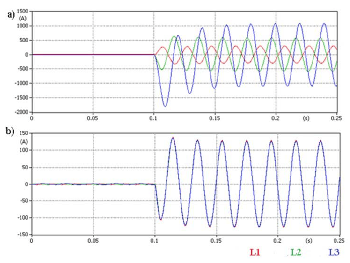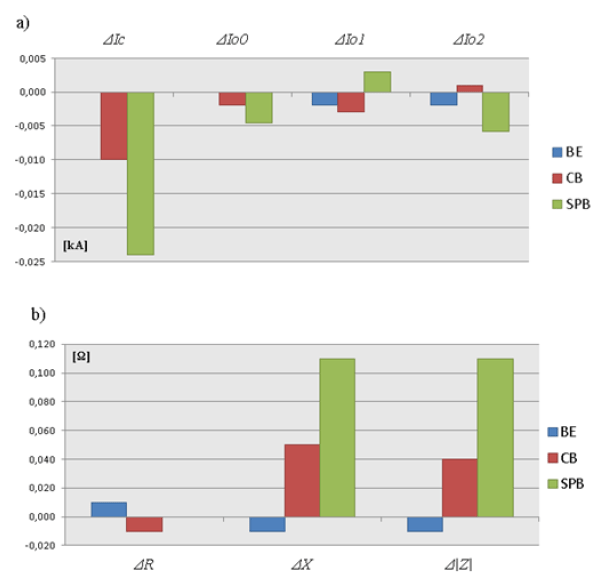 Fig. 14 summarizes the simulation results, showing the differences in short-circuit current and the peak values of individual symmetrical current components, in addition to the defining parameters of the short-circuit impedance phasor.