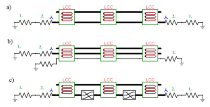 BE, CB, and SPB variants of the cable line were modelled in ATP environment [11,12]. The configuration of the return conductors differed between each variant (Fig. 2).