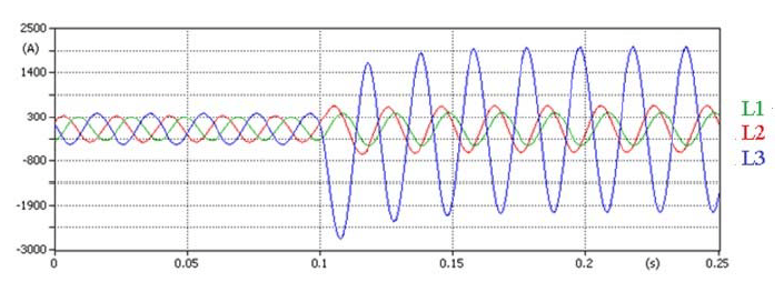 • the phase L3 fault occurred at t = 0.1 s midway along the cable line, and
