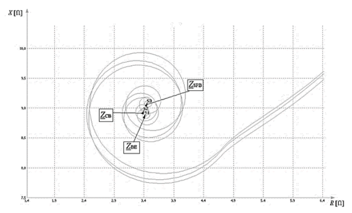 Fig. 4 shows the phasor trajectories of the short-circuit impedance for the BE, CB, and SPB systems. Among other factors, the trajectories are defined by the measurement window used to estimate the orthogonal components, and by the occurrence of the non-periodic current component. The graphical representation of the impedance trajectories required ATP output files conversion and development with use of the fault recording program iRec [7,8].